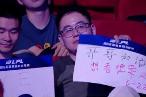 体育资讯4月8日讯 在今天TES对战WE的比赛里,导播给到观众席应援镜头,出现了有观众手举0-22的应援牌。