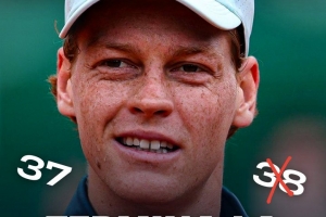 这位意大利选手曾试图在第二盘扭转局面,在2-5落后的情况下顽强追回了两个破发局,但捷克人最终通过抢七赢下了该盘,同时将辛纳的大师赛盘数连胜终止在了连赢37盘,但这一纪录依然高居历史第一。