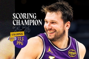 据湖人官方统计,在过去的三个赛季中,东契奇第二次荣获得分王。他是NBA历史上第20位多次获得得分王的球员。他也是湖人队史上第五位获此殊荣的球员,上一位是科比(2006-07赛季)。